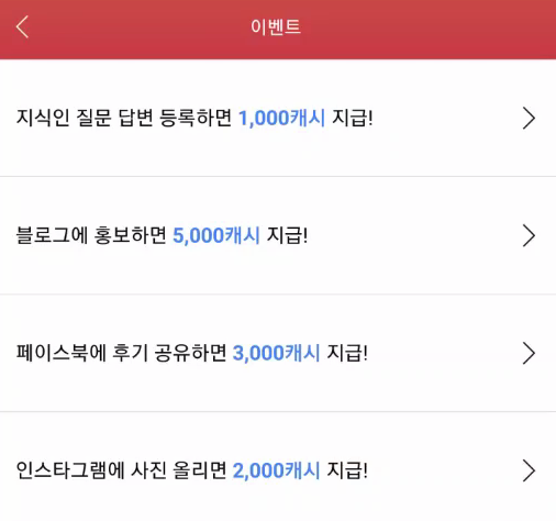 인스타나 블로그에 소개하거나 지식인 질문 답변하면 그만큼 또 캐시를 쌓을 수 있군요!